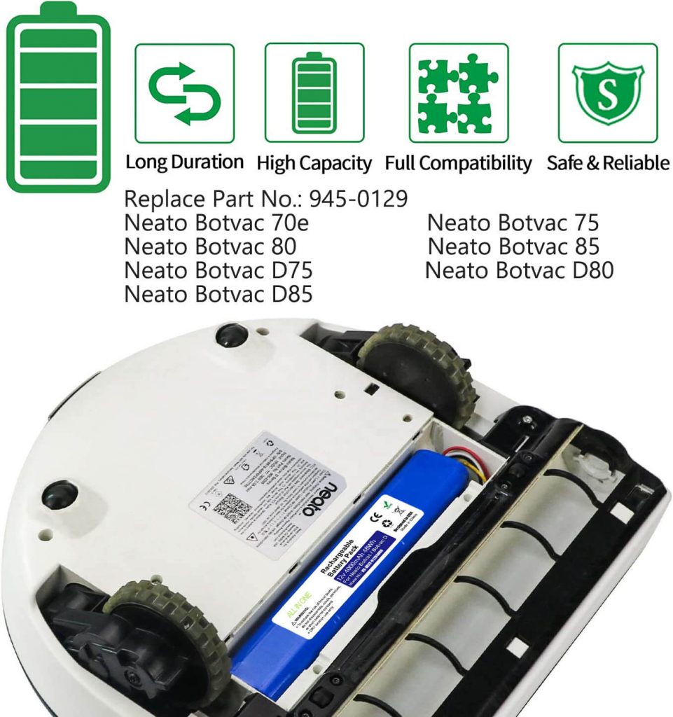 Compatible avec les modèles d'outils | Compatible avec: * Remplacer la référence: 945-0129 * Neato Botvac 70e * Neato Botvac 75 * Neato Botvac 80 * Neato Botvac 85 * Neato Botvac D75 * Neato Botvac D80 | |||