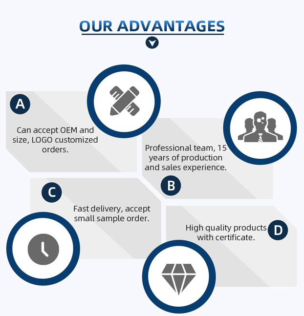 A. Faites-nous d'abord part de vos besoins ou de votre application. Deuxièmement, nous citons en fonction de vos besoins ou de nos suggestions.Troisièmement, le client confirme les échantillons et place un acompte pour commande formelle. Quatrièmement, nous organisons la production.